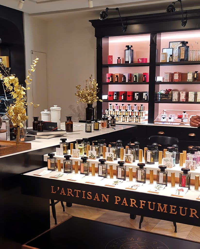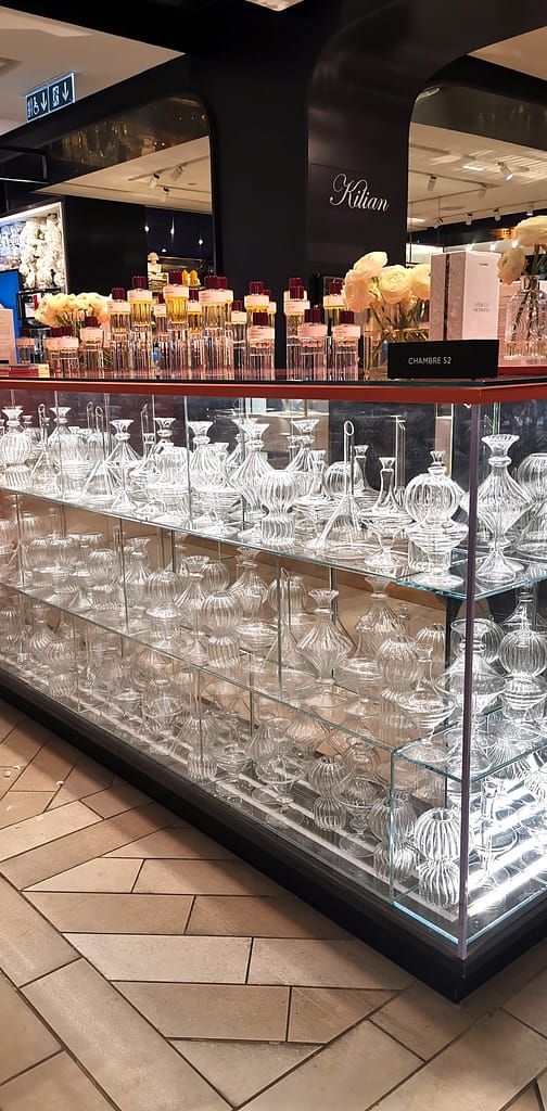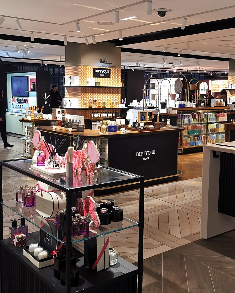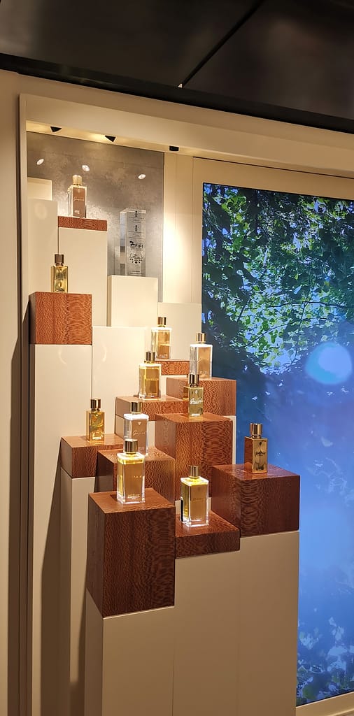 But the one that never fails to elevate my mood and get the creative juices flowing is going perfume hunting. I obviously don’t buy a perfume each time, but I like to have a list of favourites for that special occasion when I want to treat myself, and in order to know your coup-de-foudre, you need some study sessions. So every once in a while, when I leave the office on a Friday evening, I like to get the week-end started with a visit to the famous Parisian department store, Le Printemps. While I love the Galeries Lafayette for the historic feel of their glass dome and Art Nouveau staircases, every Parisian will tell you it’s not the ideal place to shop, mainly because of the crowds. So I go next door, where Le Printemps seems to have escaped the frenzy of shopping culture just a bit, even if, out of the two it is the older brother with a head start of almost 30 years. The beauty section has its own building, and even a whole floor dedicated to perfume alone. This is my happy place : I smell famous historical compositions, I discover new perfumers that surprise me, I add new volumes to my personal perfume library.