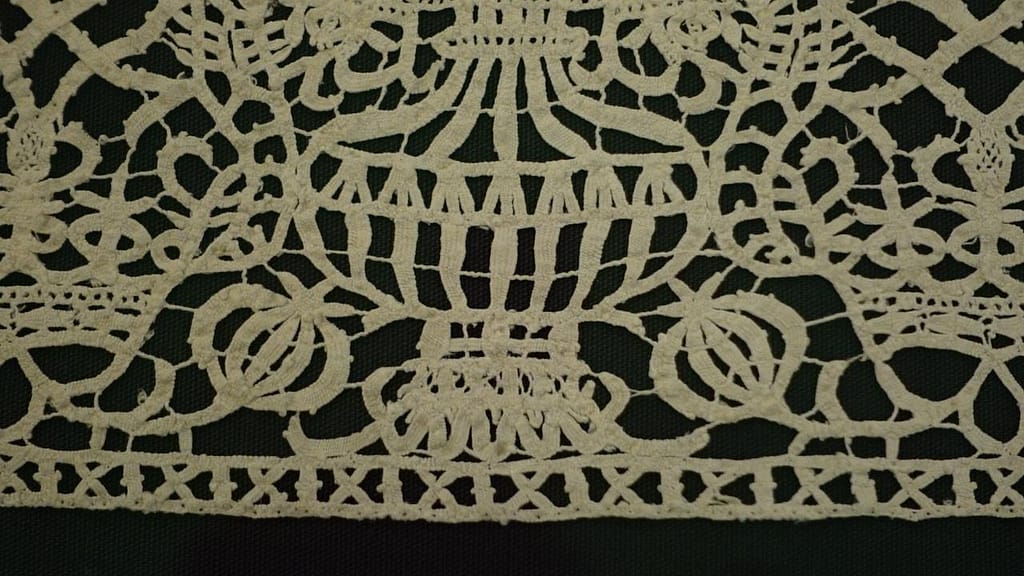 As soon as I entered, I plotted the fastest route to the Biedermeier galleries—but the universe had other plans. With that lace anecdote still fresh in my mind, I entered the glassware gallery only to discover an extensive collection of Austrian lace covering the entire gallery walls. It was extraordinary timing, almost uncanny—a mesmerizing voyage through patterns and artistry, intricate work that represented countless hours of feminine labor, skill passed from generation to generation, beauty created in those very domestic spaces the Biedermeier era so celebrated.