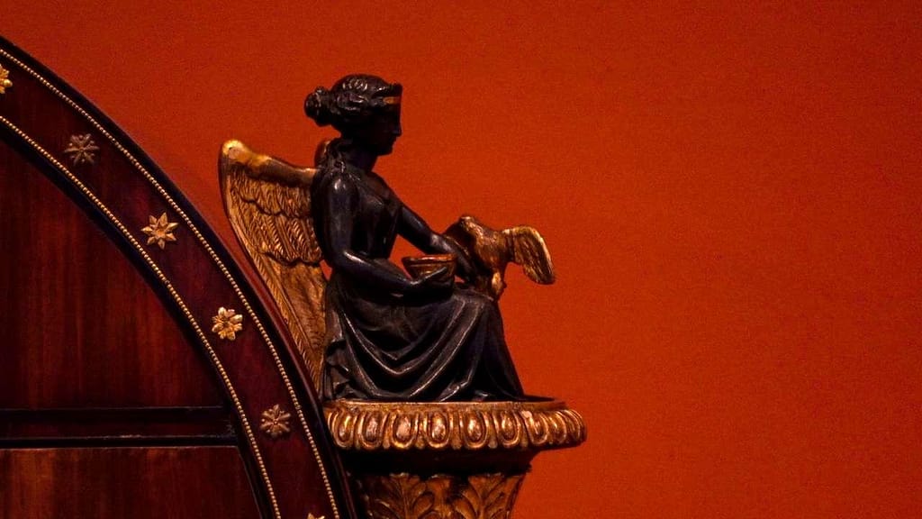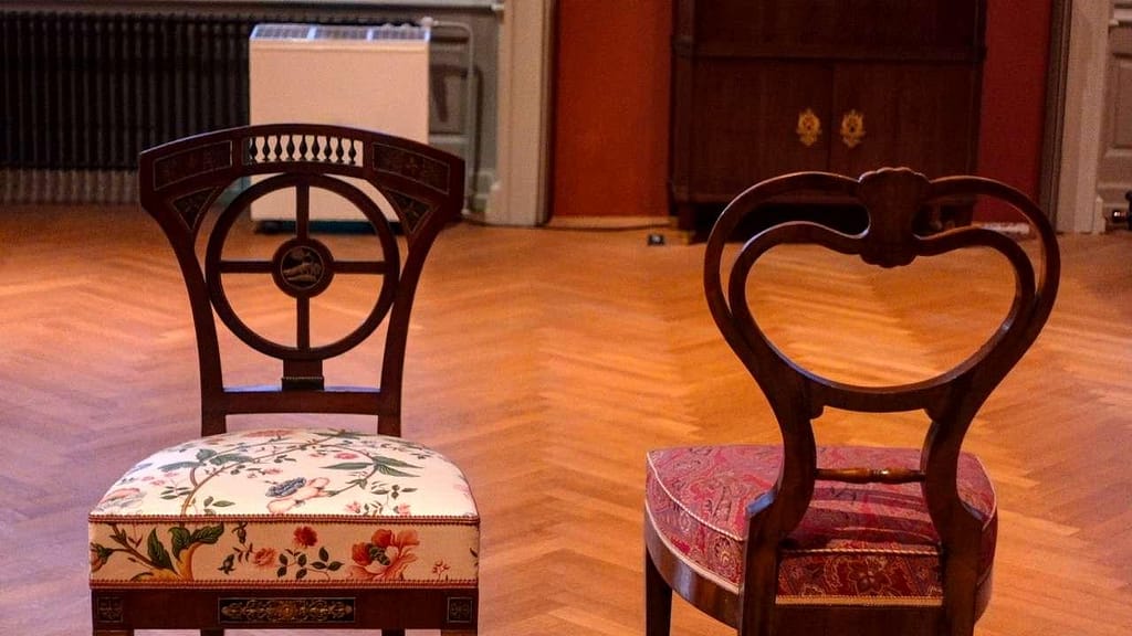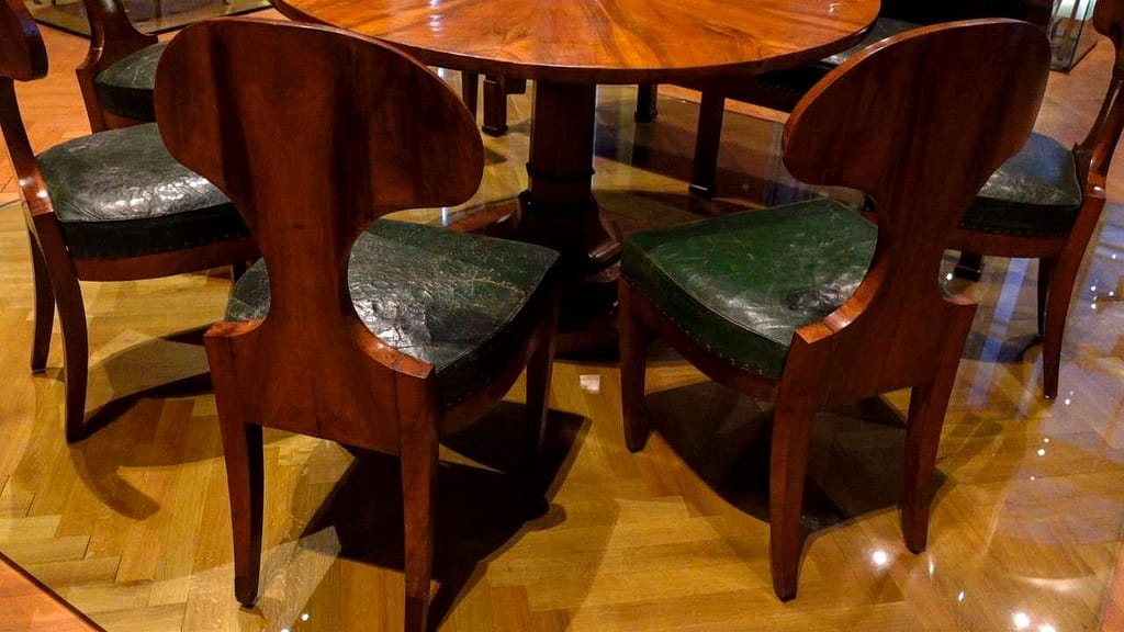 The Biedermeier gallery itself occupies one of the museum’s most beautiful salons. The furniture immediately reveals designs oriented toward craftsmanship and comfort rather than ostentatious display. Biedermeier pieces gather inspiration from French Empire style but express it in simplified, more accessible forms—elegant without being intimidating, refined without requiring vast wealth. This represents the first decorative style in European history that emanated from the middle class rather than aristocracy, designed for homes of moderate size and budgets rather than palaces.