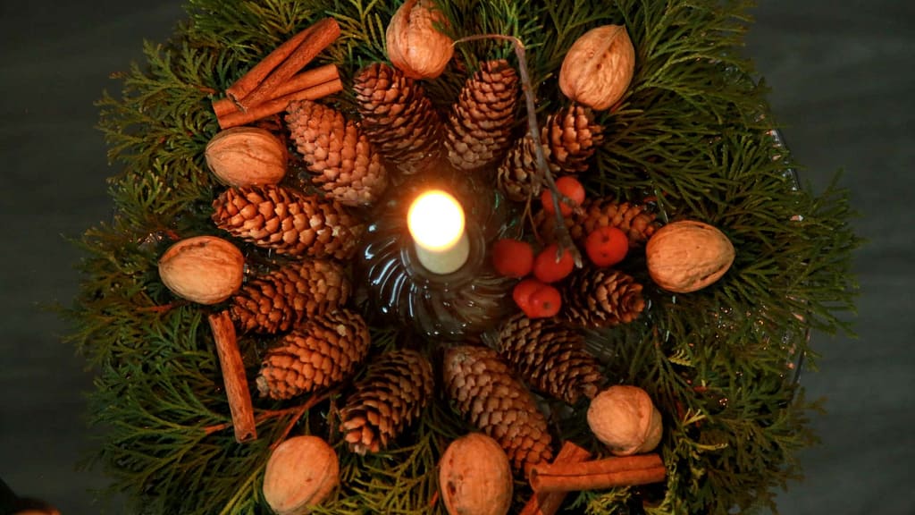 Today, as we begin lengthening our days once more—imperceptibly at first, just minutes added each afternoon—we celebrate the birth of the sun. Not its literal birth, of course, but its symbolic rebirth, its turn back toward strength and warmth after reaching its weakest, most distant point. This inspired me to create a natural mandala centerpiece to grace my table through the holidays—a small act of creation that honors the turning of the wheel.