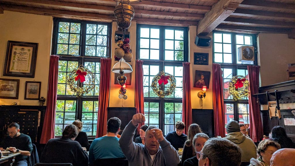 Café Vlissinghe has been serving that role since 1515. Think about that for a moment—over five centuries of neighbors gathering, of stories shared, of warmth offered against the Flemish winter. The building itself seems to hold all those years in its bones: low ceilings darkened by centuries of pipe smoke, worn wooden tables marked by generations of elbows and beer glasses, windows that look out onto a garden that has seen more history than most museums.
