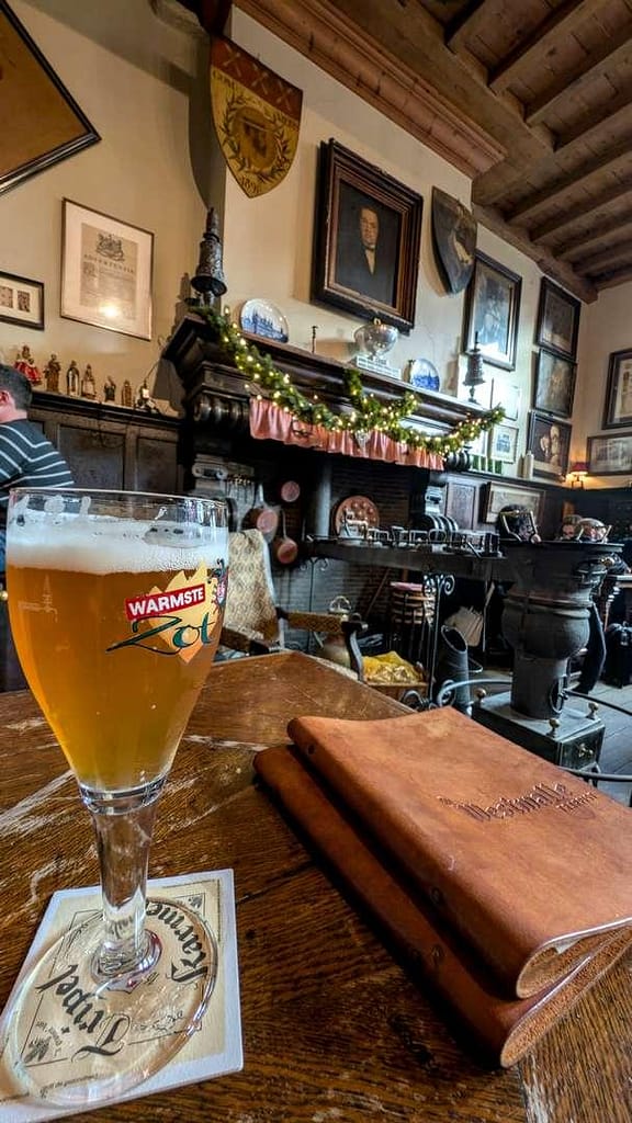 The fire was roaring inside the most original little log burner, dating back to the 19th century. I was already pretty tired from walking through Bruges all morning, so I drank a local alcohol-free beer. But we cannot end the Belgian Advent Calendar without speaking of beer, can we?
