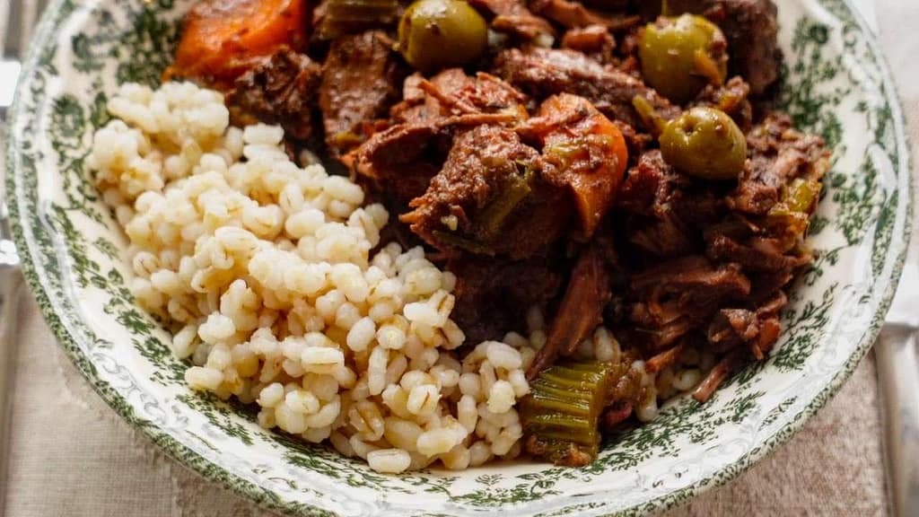 Four hours of gentle bubbling in the oven (just time enough to finish a good book, as tradition demands) yields beef so tender it falls apart at the touch of a fork, while the wine-dark sauce carries within it all the warmth and generosity of the Midi. Served with humble barley instead of potatoes, it becomes a meal that honors both the earthy pragmatism of Pagnol’s family and the poetic beauty he found in their simple, abundant life.