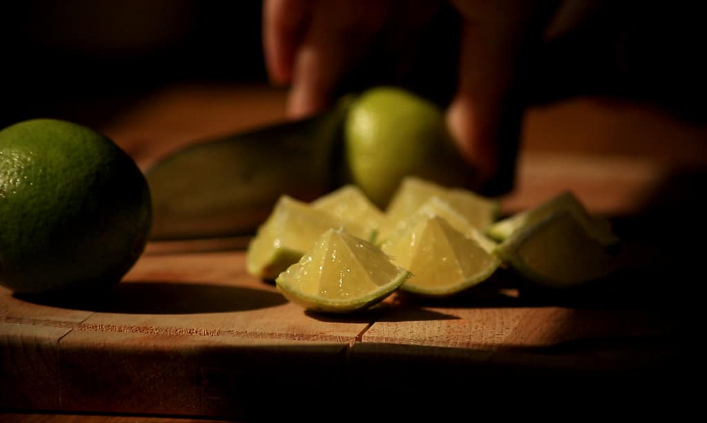 Cut your limes into cubes, and add them to your blender with the rest of the ingredients.