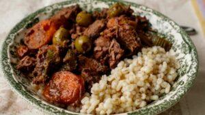 It’s typically served with boiled potatoes but I chose some barley instead, and the combination works wonders. The beef is incredibly tender, the wine brings everything together and the herbs add in the sunshine. It’s more exuberant than its cousin, the boeuf bourguignon, more southern I would say. A beautiful festive dish that makes you travel to the heart of Provence.