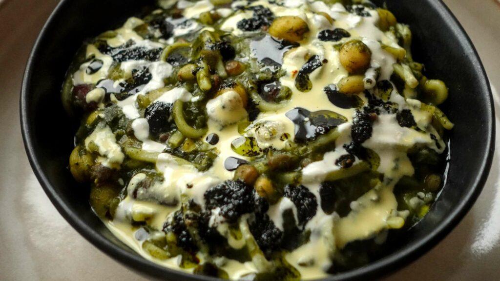 Emerald-green with hope and fragrant with abundance, this Persian soup speaks the universal language of nourishment and love. Seven cups of fresh herbs might seem excessive, but like the generous hearts of Mehran’s three Iranian sisters, this soup believes in abundance as a form of healing. The complex interplay of beans, greens, and aromatic toppings—kashk with saffron, crackling fried mint—creates bridges between worlds, showing how some gifts from foreign kitchens are too precious to resist.