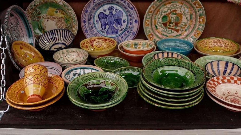 - Pottery thrown on traditional wheels
