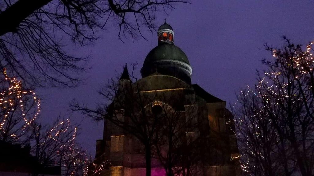 - Dramatically lit during Christmas market
