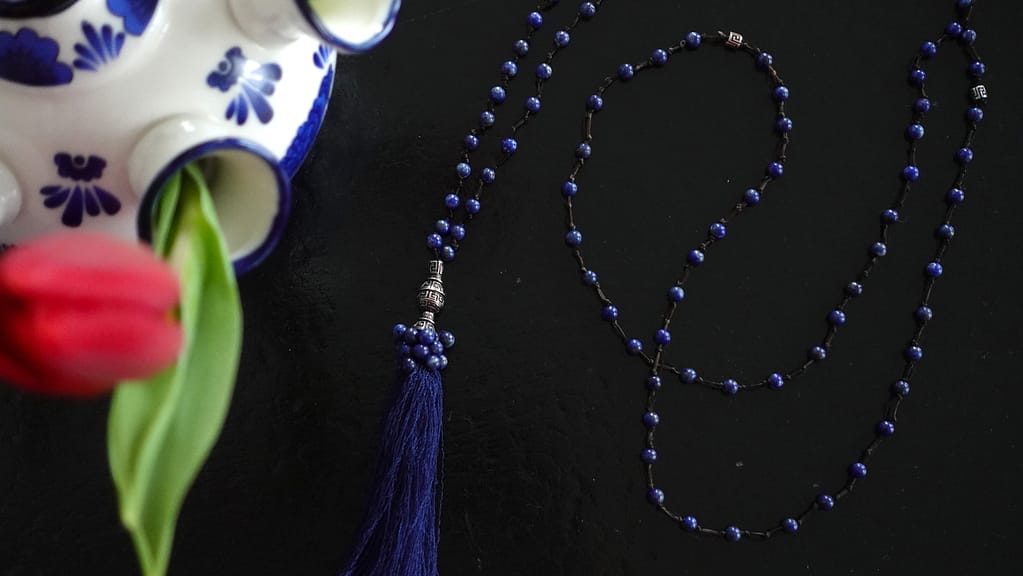 I’m currently wearing a long necklace of lapis-lazuli beads inspired by the meditation malas. It’s something I cherish dearly, since it’s custom made by my very best friend. Today however, I’m wearing it with a different intention, as a way of connecting with the little drop of Mesopotamian culture that I’ve been cultivating around me. Elif Shafak’s novel has a beautiful reference to the gemstone, that I’ll let you discover unspoiled, however my imagination carries me to the gemstone artists that worked with these stones every single day during the powerful rules of the most mythical Kings, transforming them into resplendent objects that would reflect the exceptional legacy of their culture. The Lapis vibrates around me with the energy of the eternal Mesopotamian wisdom, that has outlived its people, and, if we’re careful, will forever be a founding piece in the puzzle of humanity.