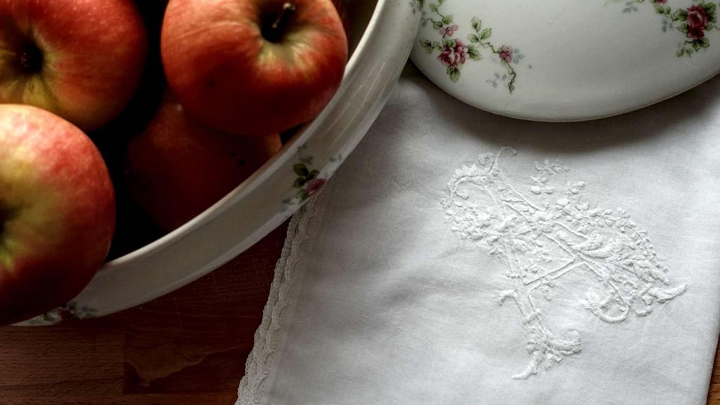 My classics mood, as reading often does for me, translates into every moment of my day—so this October, I’m bringing out the timeless linens for their moment in the autumn light. You may have family heirlooms tucked away in drawers: delicate tea sets passed down through generations, napkins embroidered by your grandmother’s patient hands. You might fancy trying some embroidery yourself during the long autumn evenings, needle and thread moving in meditative rhythm. Or perhaps you’ll have a look at your local charity shop for some forgotten beauties just waiting for a new chapter in their lives, rescued from obscurity and given purpose once more.