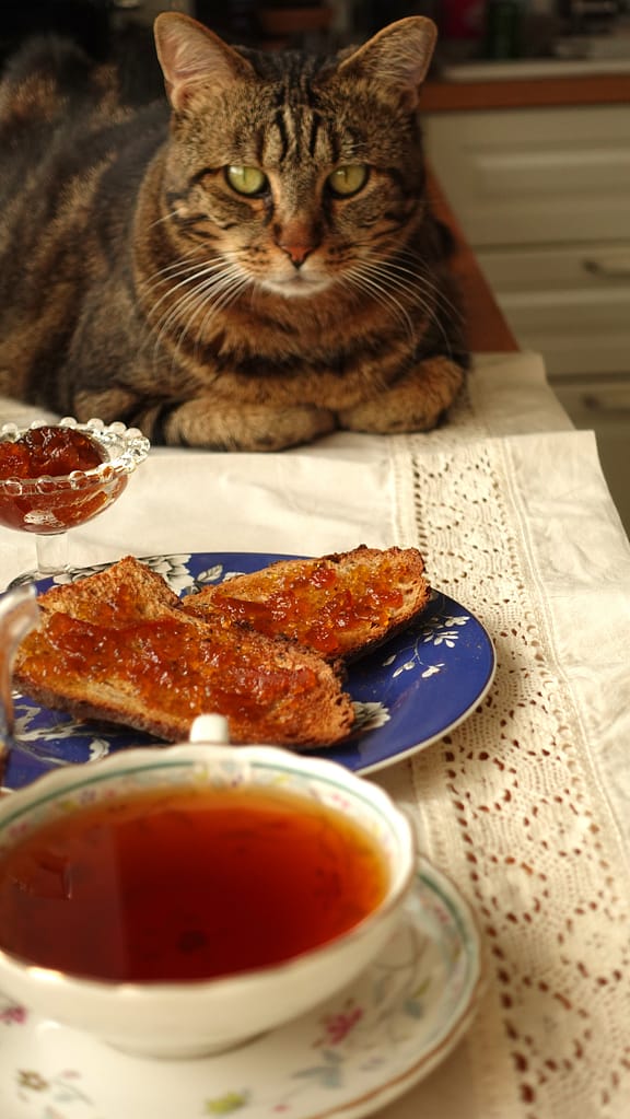 My setting doesn’t exactly scream pack of hounds, but it does involve a nice cup of English Breakfast tea and some Old English Hunt Marmalade, as a ritual to remember that true luxury is right here : on an early Sunday Morning, with my book and my tea, reveling in the joy of being alive.