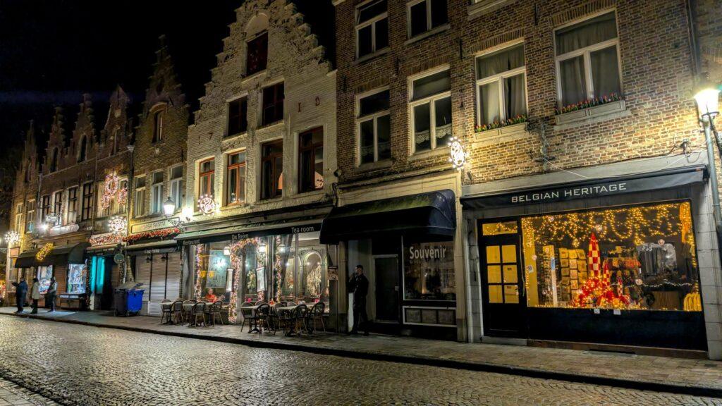 I’m standing at the edge of the Minnewater—the Lake of Love—in Bruges, and the darkness transforms everything. What looks romantic and serene in daylight becomes something else entirely when the sun goes down. The swans disappear into shadow. The trees lean in closer. The water goes black and still. You start to understand why a crime novelist would choose this spot to open a story.