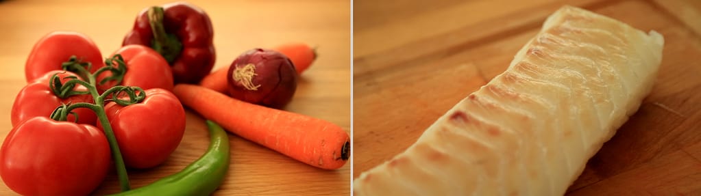 - When all your vegetables are cooked and the sauce is nice as thick, add in the fish, cut in large cubes so they keep their shape. Let it cook for 5min then turn off the heat and let it rest with the lid on for 20min.