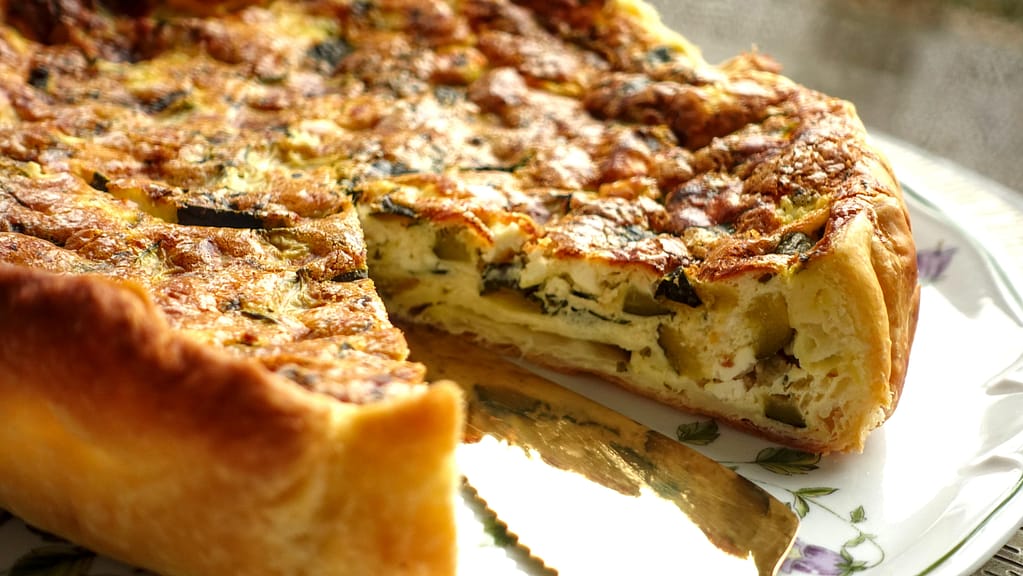 This quiche offers all the refreshing flavors of summer with the added convenience of store-bought puff pastry. The combination of sweet courgette, salty feta, and aromatic mint makes for a light yet satisfying meal, perfect for a casual lunch or a summer picnic.