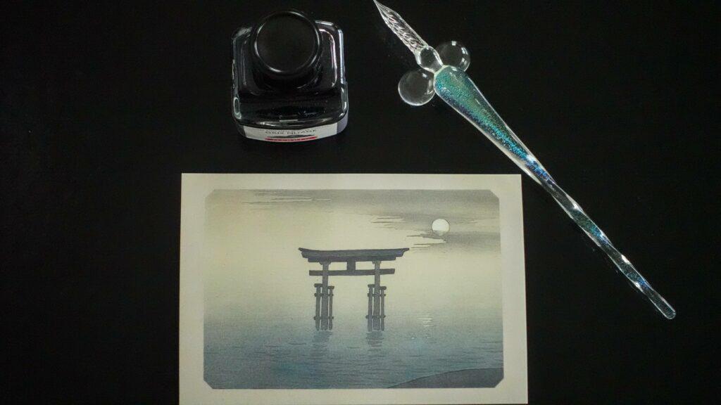 Learning to write even a single kanji character is humbling. What looks simple when demonstrated by someone fluent reveals itself to be a complex choreography of stroke order, pressure, angle and rhythm. I watched YouTube tutorials that made it seem effortless. I filled pages trying to gather the courage to write on the actual postcard. The glass pen felt unfamiliar in my hand. The ink pooled where I hesitated, thinned where I rushed.
