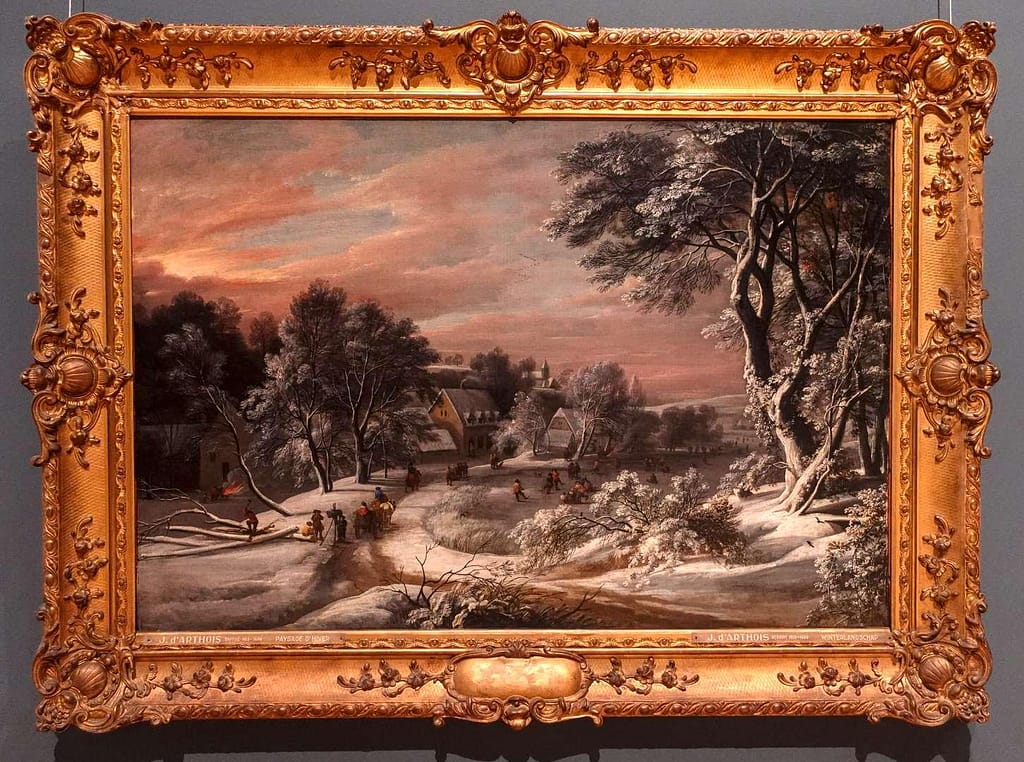 A Brussels native, d’Arthois belonged to the famous “Brussels Landscape School,” known for its richly wooded scenes. Even in winter, his compositions overflow with dense trees and winding paths, as if inviting the viewer to step in and explore. His winter is less about human activity and more about the quiet endurance of nature—a forest holding its breath under a thin veil of frost.